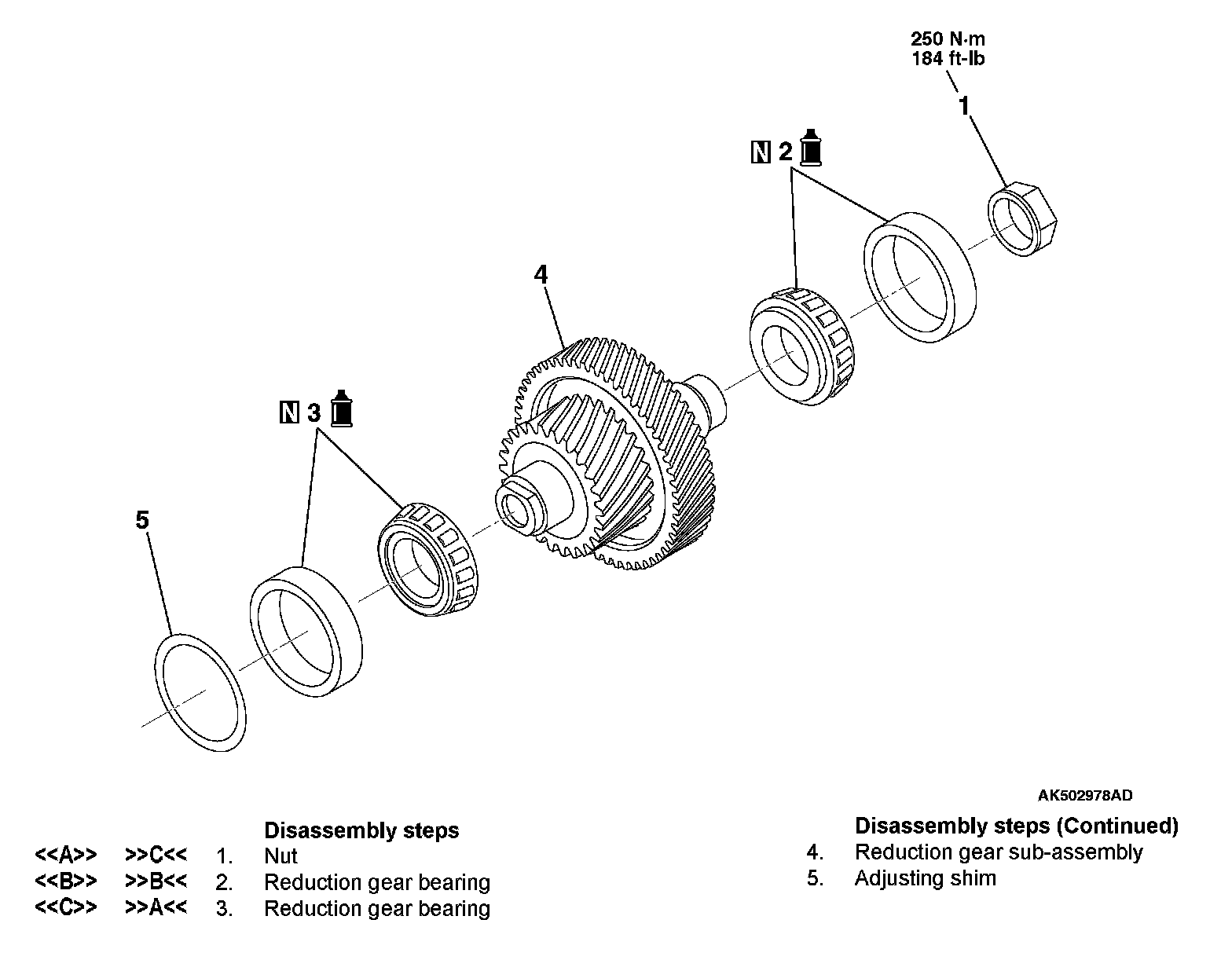 Install the nut on the reduction gear sub-assembly to the specified torque.