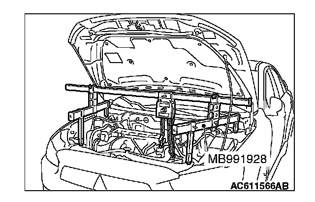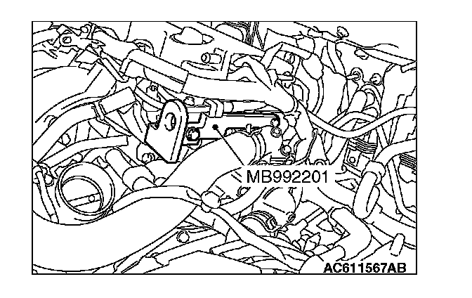 1. Remove the vacuum pipe assembly, and install the engine hanger plate (special tool: MB992201) to the position as shown in the figure.