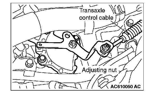 4. Use the adjusting nut to tighten the transmission control cable to the specified torque.