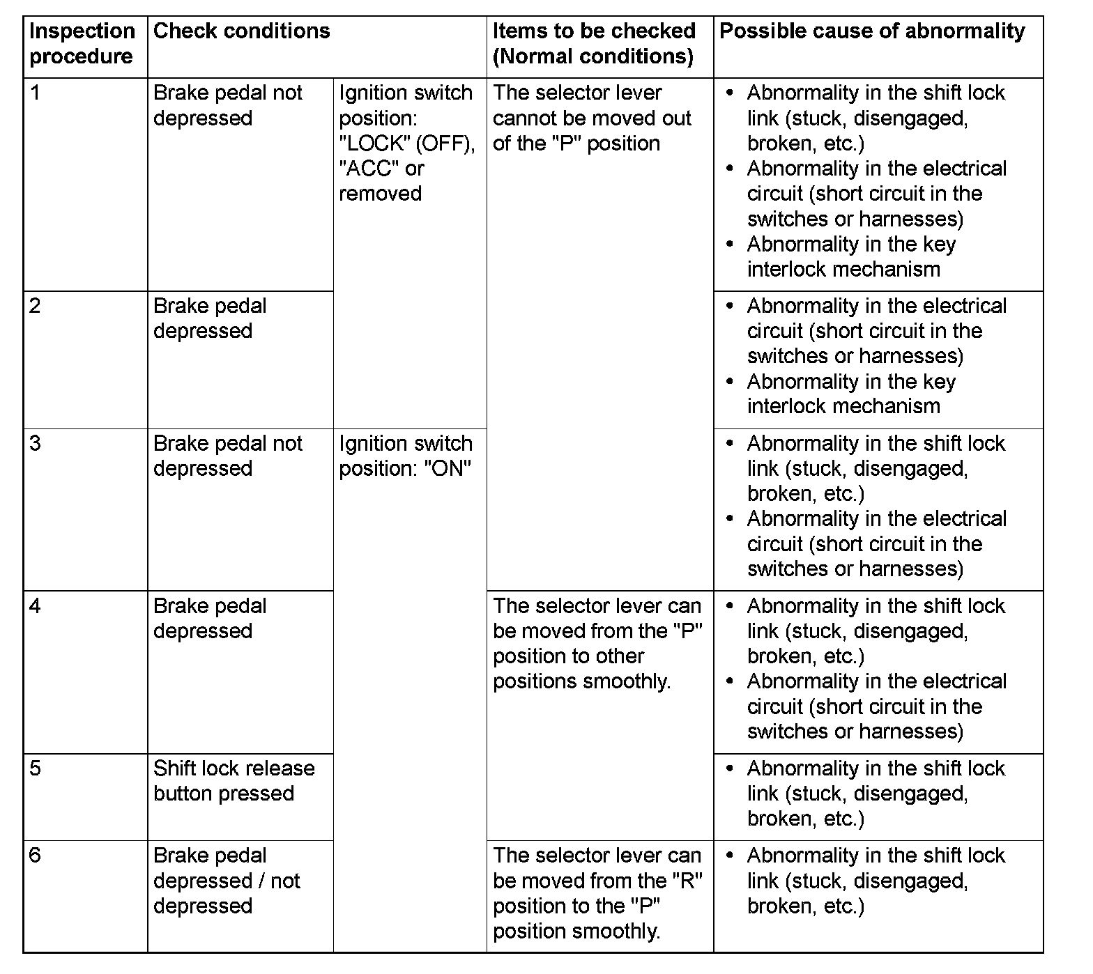 SHIFT LOCK MECHANISM CHECKSYSTEM CHECK