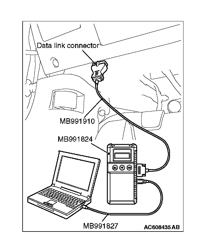 3. Connect special tool MB991827 to special tool MB991824 and the personal computer.