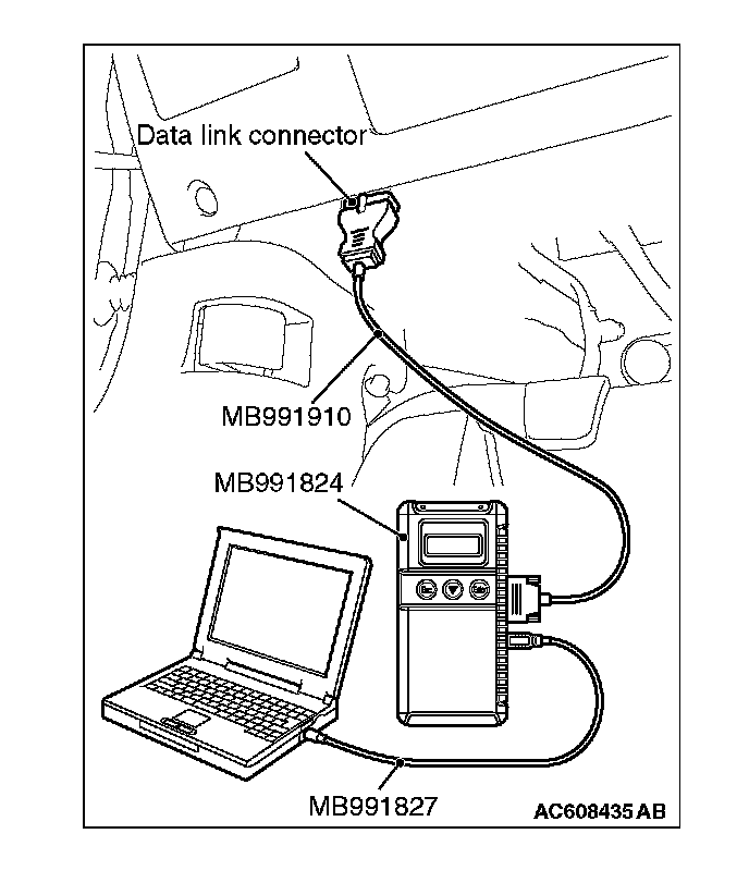 To prevent damage to scan tool MB991958, always turn the ignition switch to the "LOCK" (OFF) position before connecting or disconnecting scan tool MB991958.