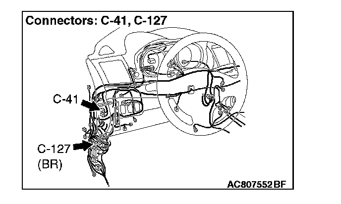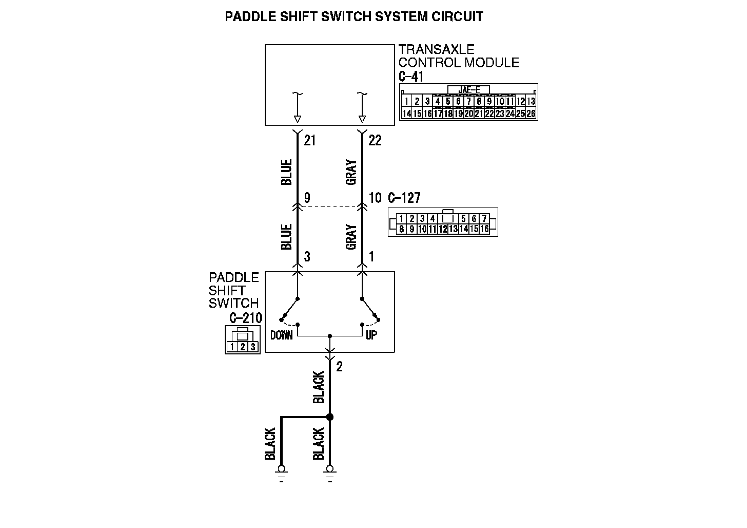 ^ Between C-41 TCM connector (terminal No.22) and C-210 paddle shift switch connector (terminal No.1)