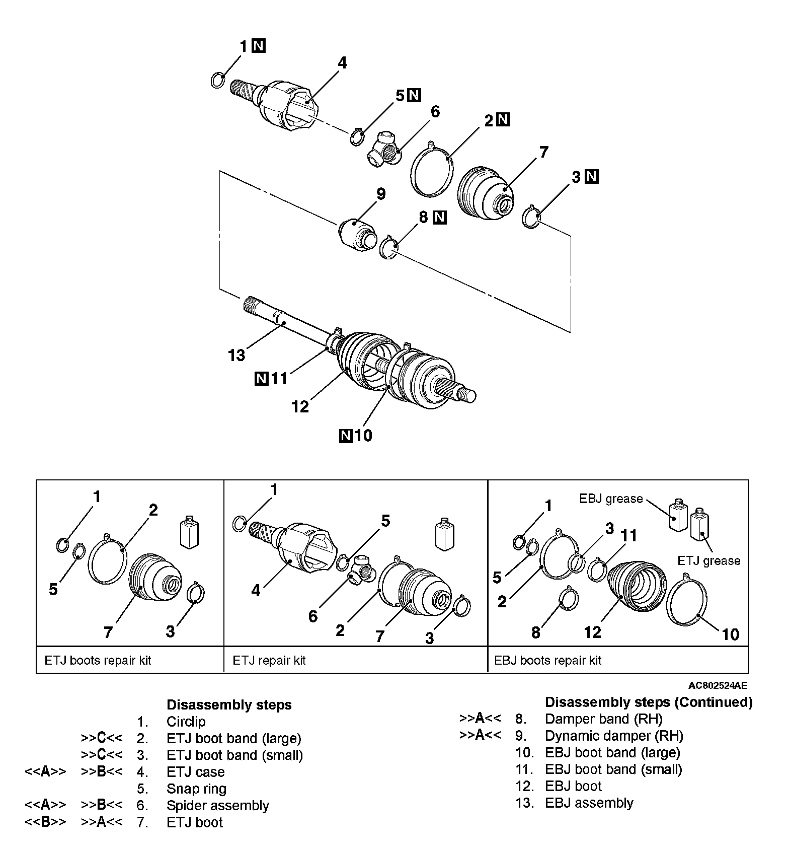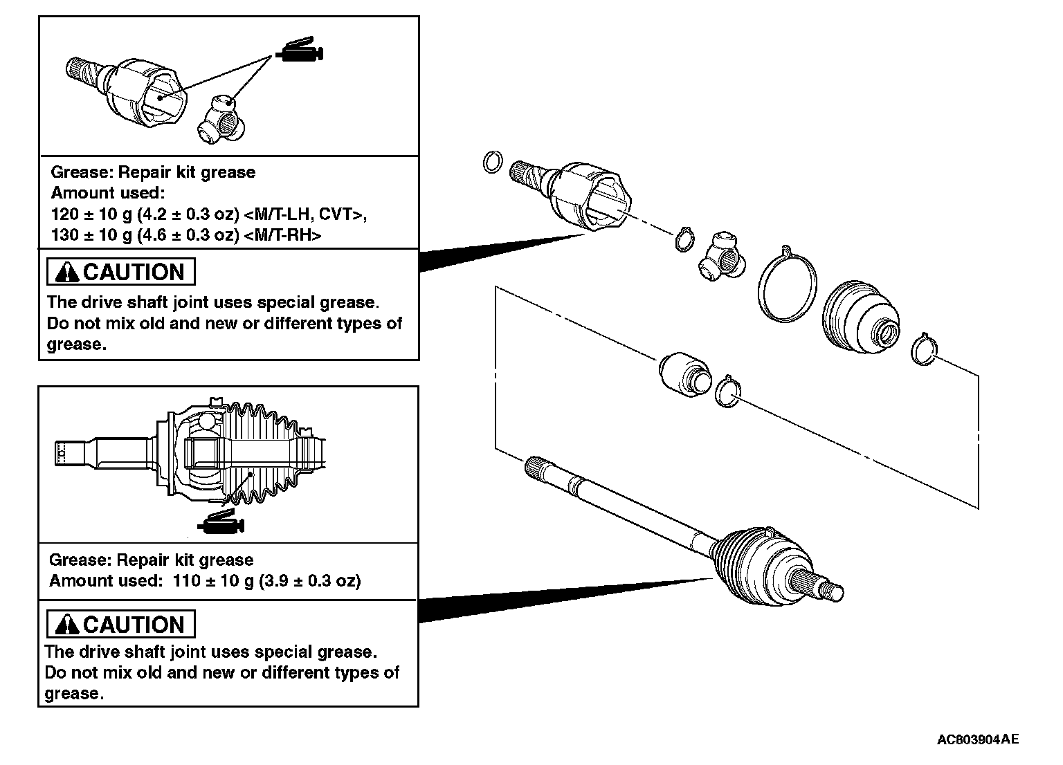 ^ The driveshaft joint use special grease. Do not mix old and new or different types of grease.