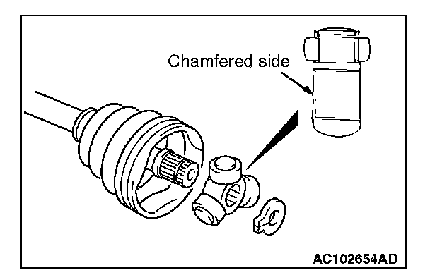 2. Install the spider assembly to the shaft from the direction of the spline chamfered side.