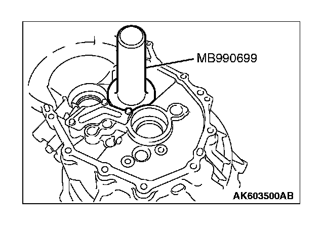 Using special tools MB990699 and install the tapered roller bearing outer race.
