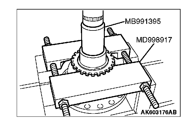1. Using special tool MD998917 and MB991395, support the speedometer drive gear, and then set them on the press.