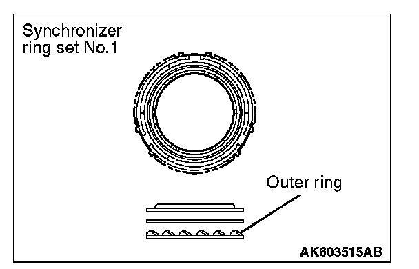 1. Make sure that the synchronizer outer ring of the synchronizer ring set No. 1 is as shown.