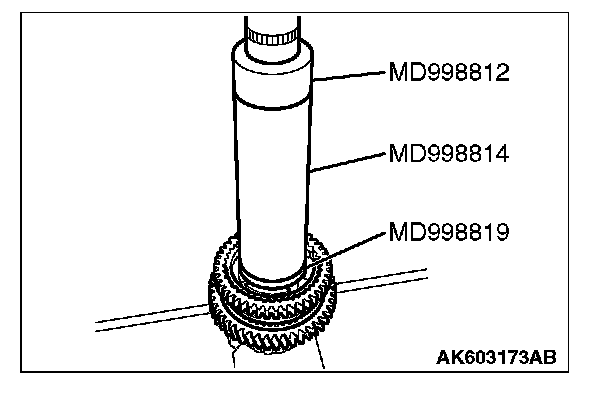 Using special tools MD998812, MD998813 and MD998819, install the 4th drive gear.