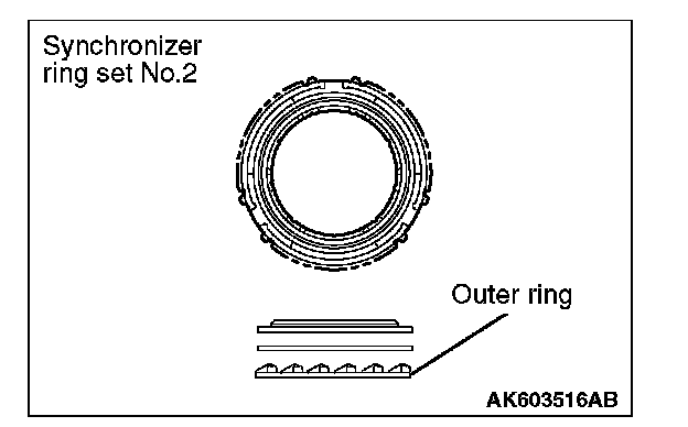 1. Make sure that the synchronizer outer ring of the synchronizer ring set No. 2 is as shown.