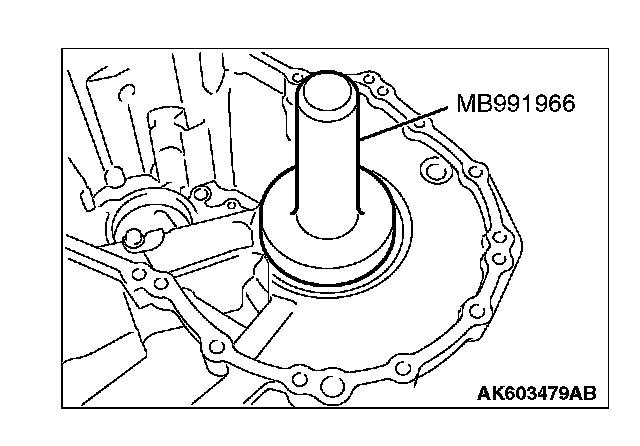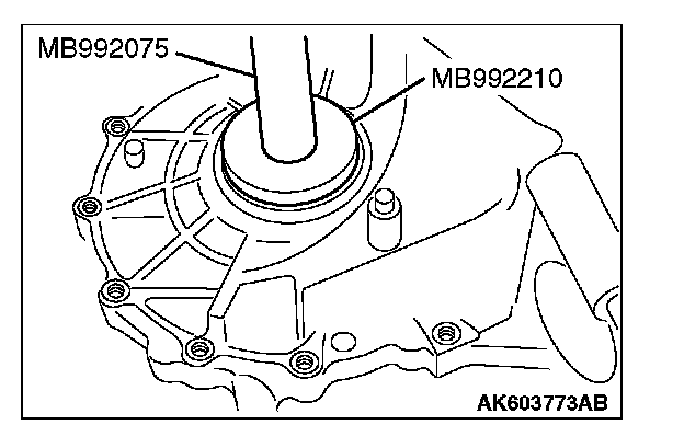 1. Using special tools MB992210 and MB992075, press-fit the oil seal until the difference in height between the transaxle case and oil seal is obtained as shown.