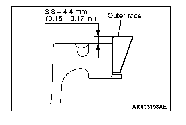 2. Press-fit the tapered roller bearing outer race to the height shown in the illustration.