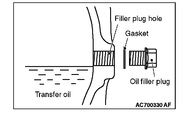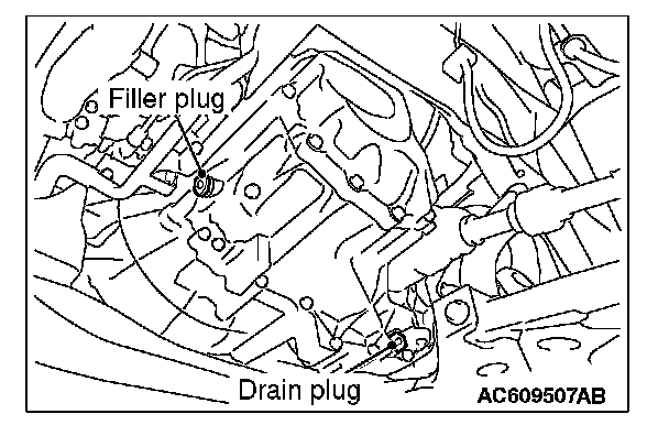 2. Check that the oil level is up to the lower edge of the filler plug hole.