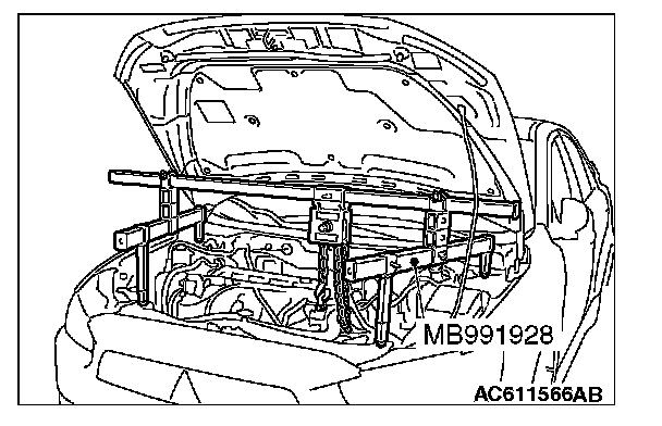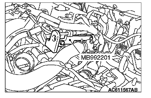 1. Remove the vacuum pipe assembly, and install the engine hanger plate (special tool: MB992201) to the position as shown in the figure.