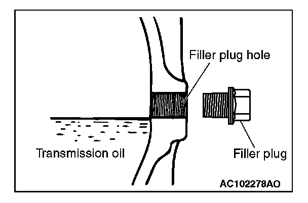 STEP 3. Check that the oil level is up to the lower edge of the filler plug hole.