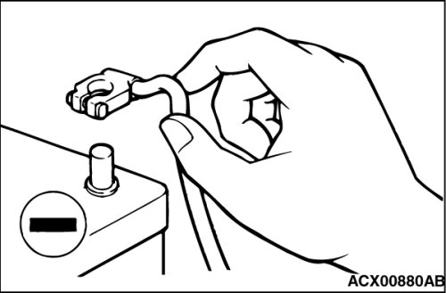 - Before connecting or disconnecting the negative battery cable, be sure to turn the ignition switch to the "LOCK" (OFF) position and turn off the lights (If this is not done, there is the possibility of semiconductor parts being damaged).