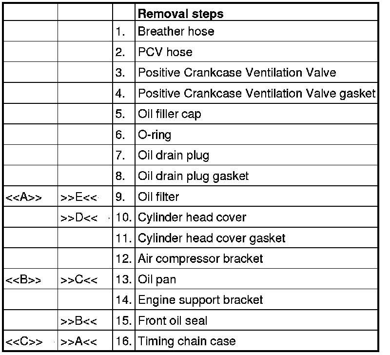 Completely remove the liquid gasket adhering to the timing chain case, the cylinder block and the cylinder head.