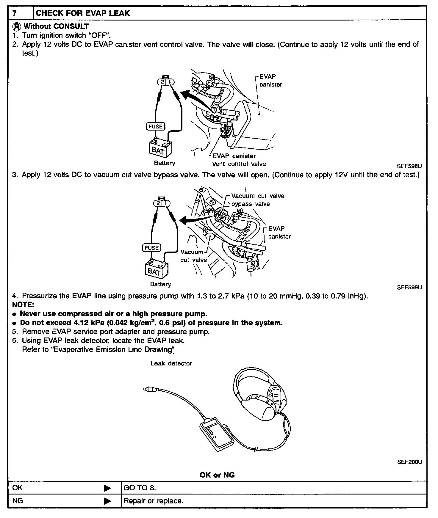 - Do not exceed 4.12 kPa (0.042 kg/sq.cm, 0.6 psi) of pressure in EVAP system.