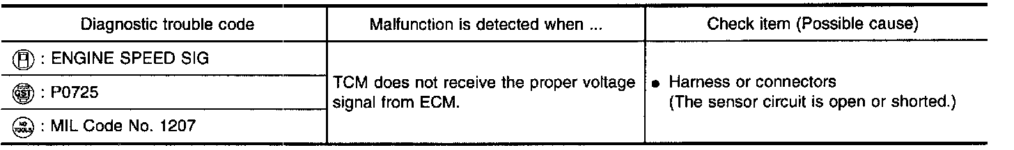 DescriptionThe engine speed signal is sent from the ECM to the TCM.