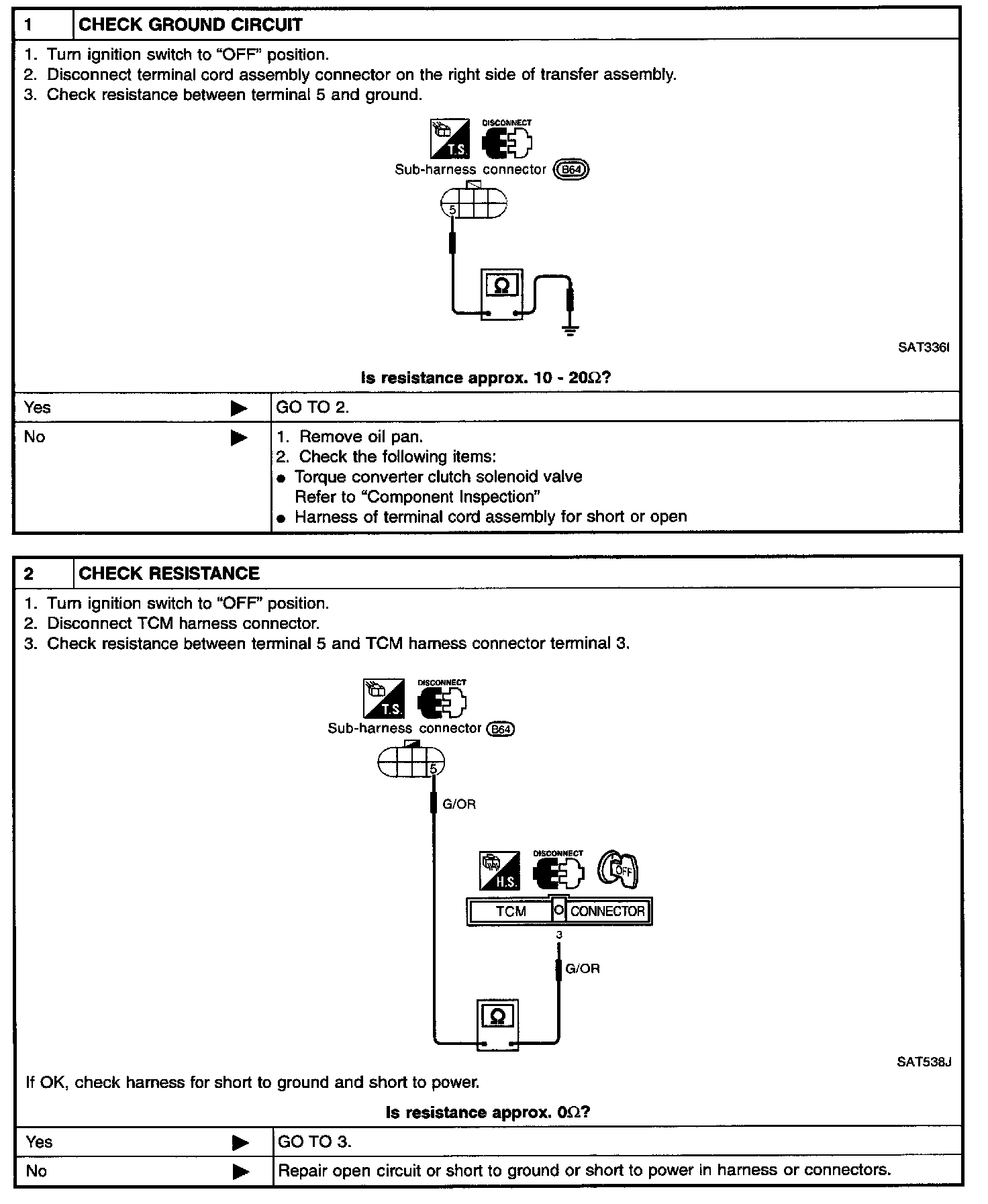 - Check solenoid valve by listening for its operating sound while applying battery voltage to the terminal 7 and ground.