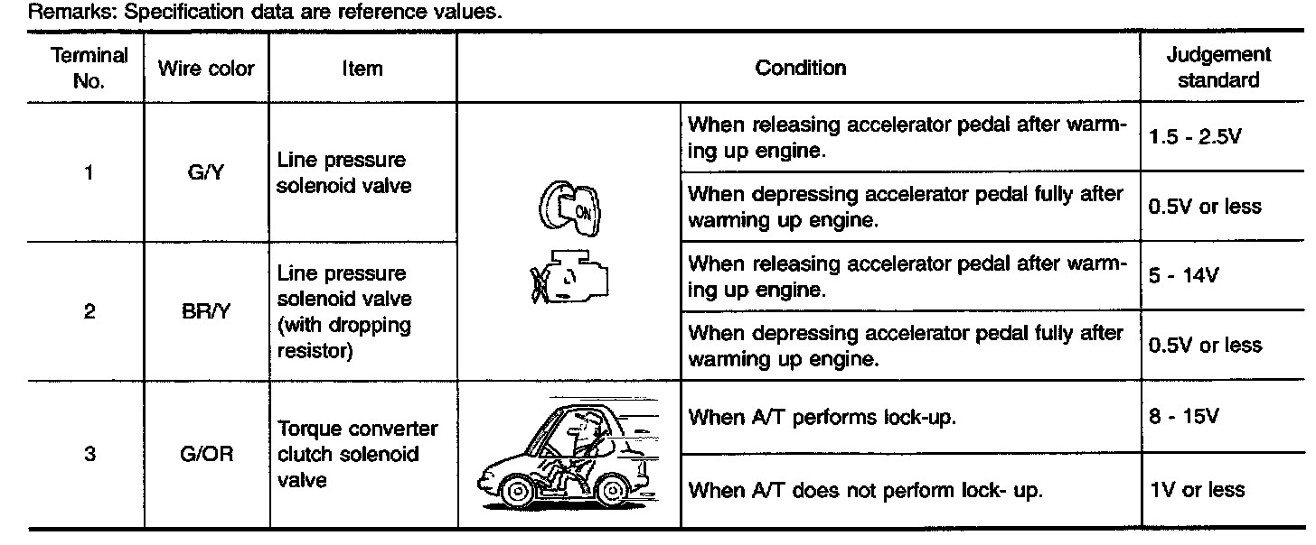 2. Make sure that output voltage of A/T fluid temperature sensor is within the range below.
