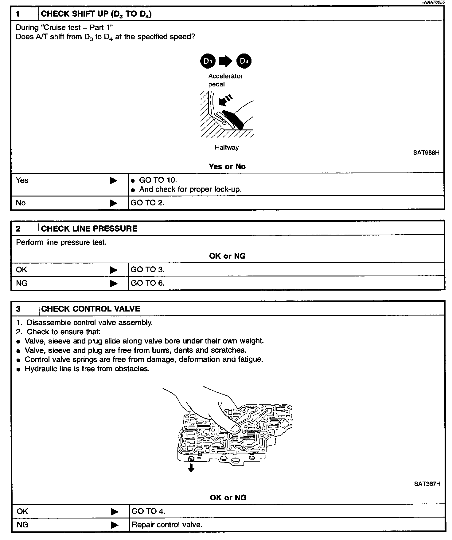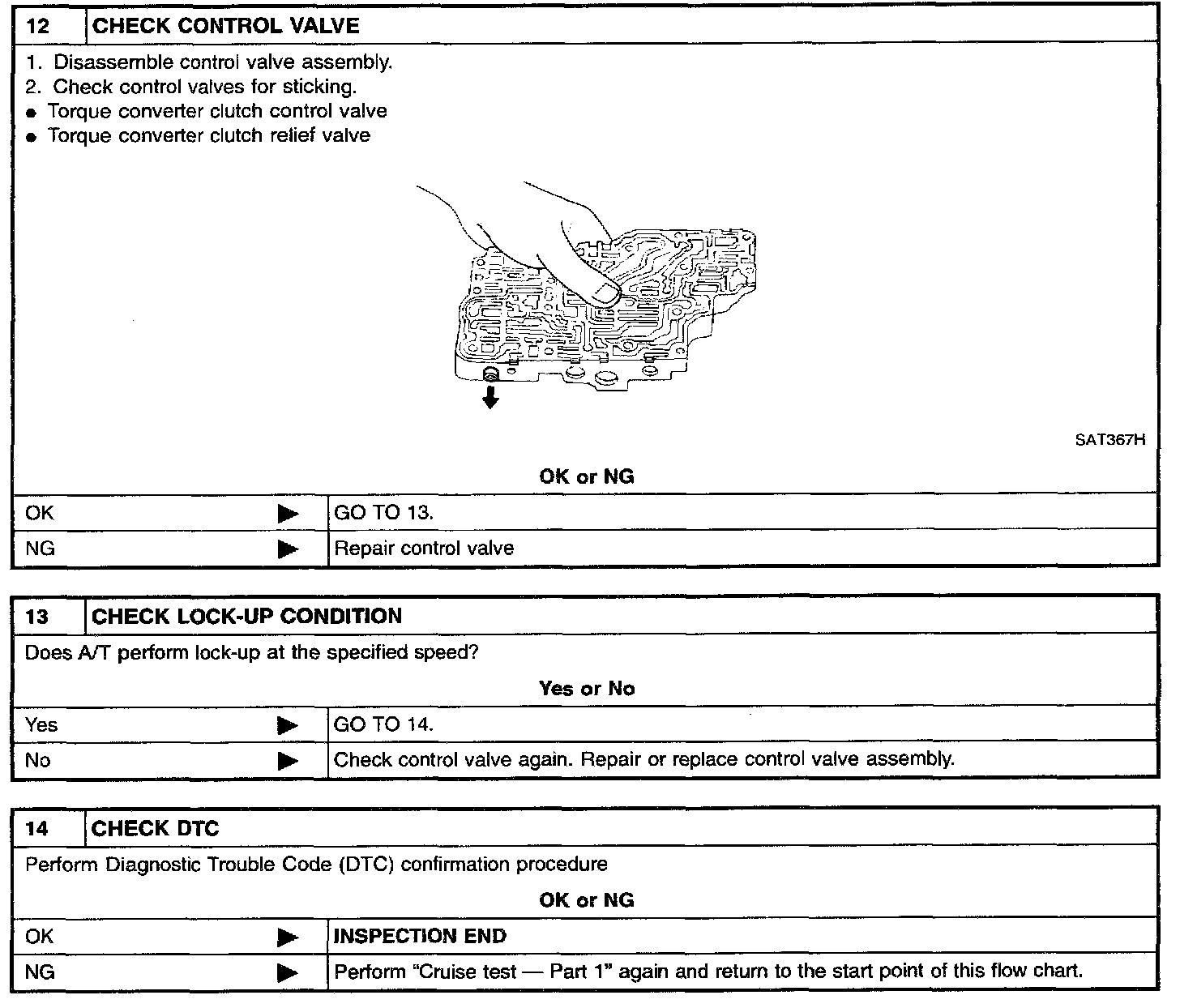 - This malfunction is detected when the A/T does not shift into fourth gear position or the torque converter clutch does not lock up as instructed by the TCM. This is not caused by electrical malfunction (circuits open or shorted) but by mechanical malfunction such as control valve sticking, improper solenoid valve operation, malfunctioning oil pump or torque converter clutch, etc.
