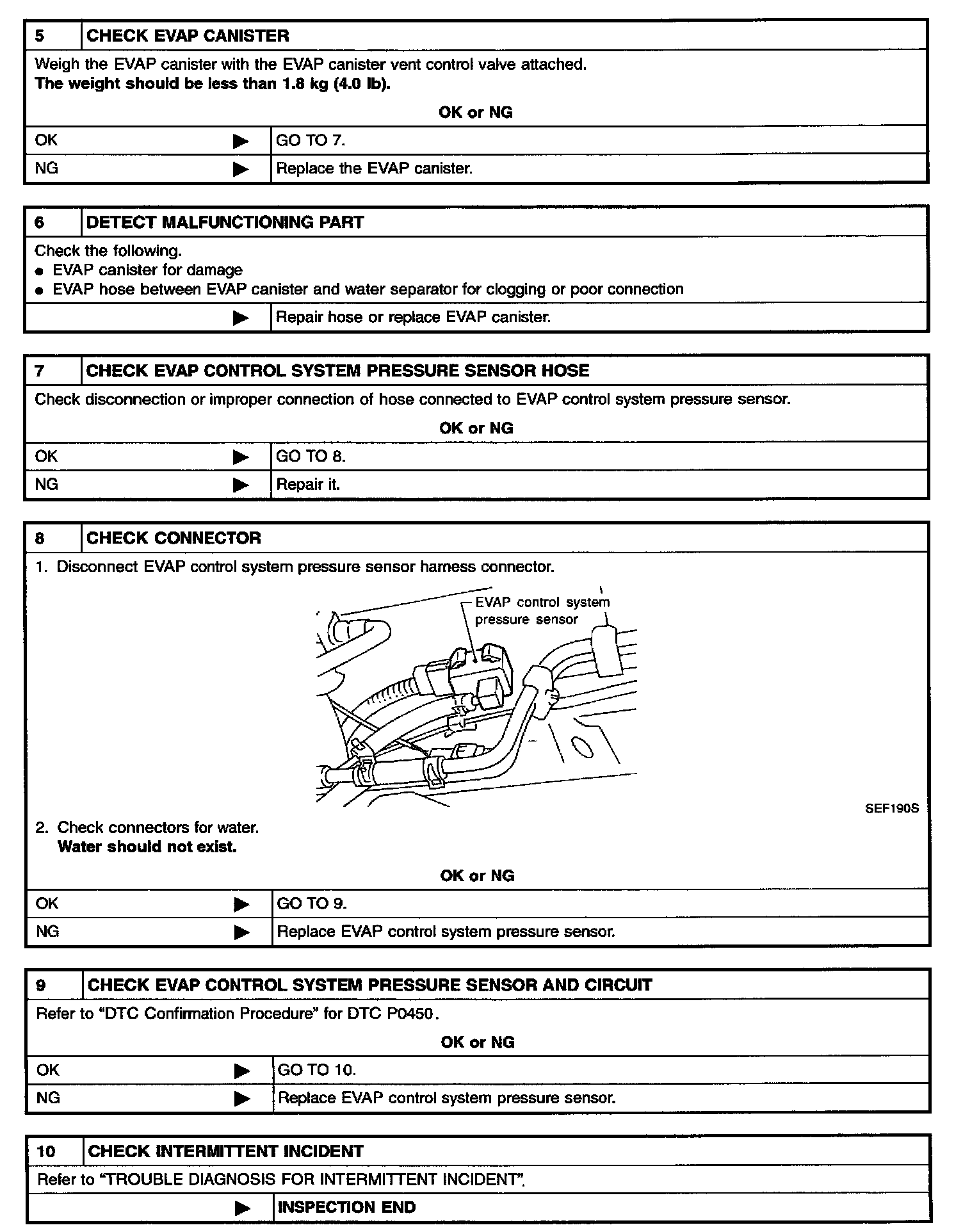 5. In case of NG in items 2 - 4, replace the parts.