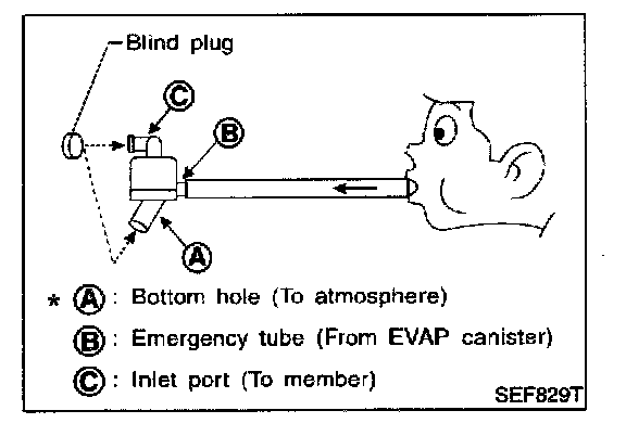 4. Check that A and C are not clogged by blowing air into B with A, and then C plugged.