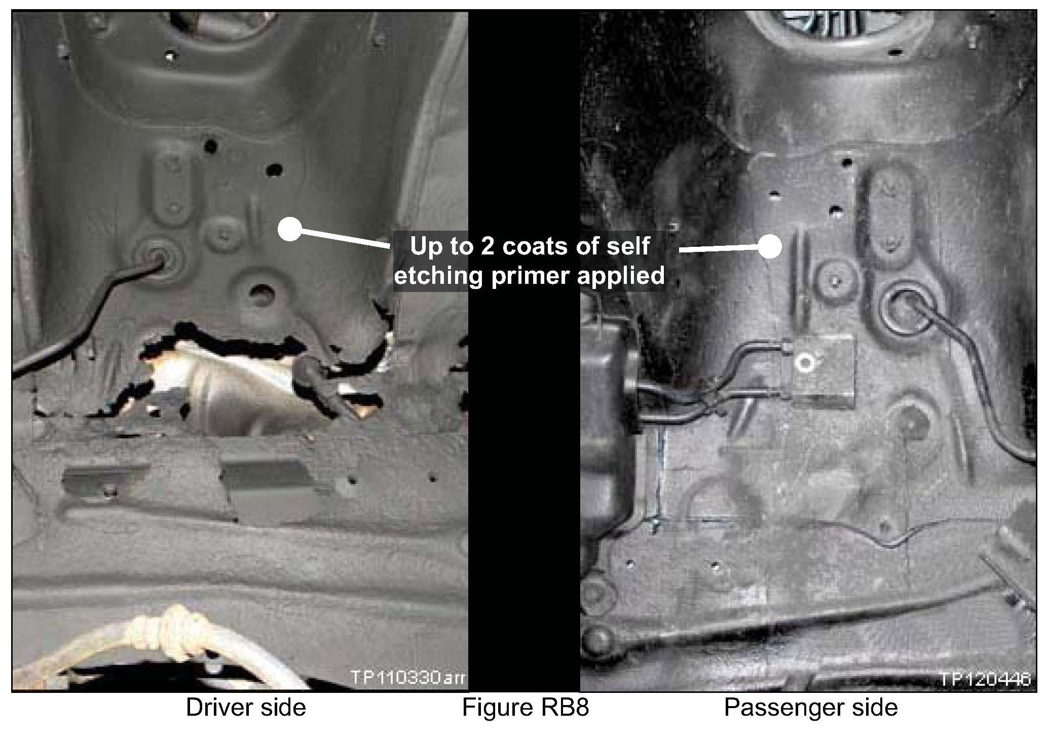 4. Clean all the loose rust from the strut housing and wheel house areas (see Figure RB3).