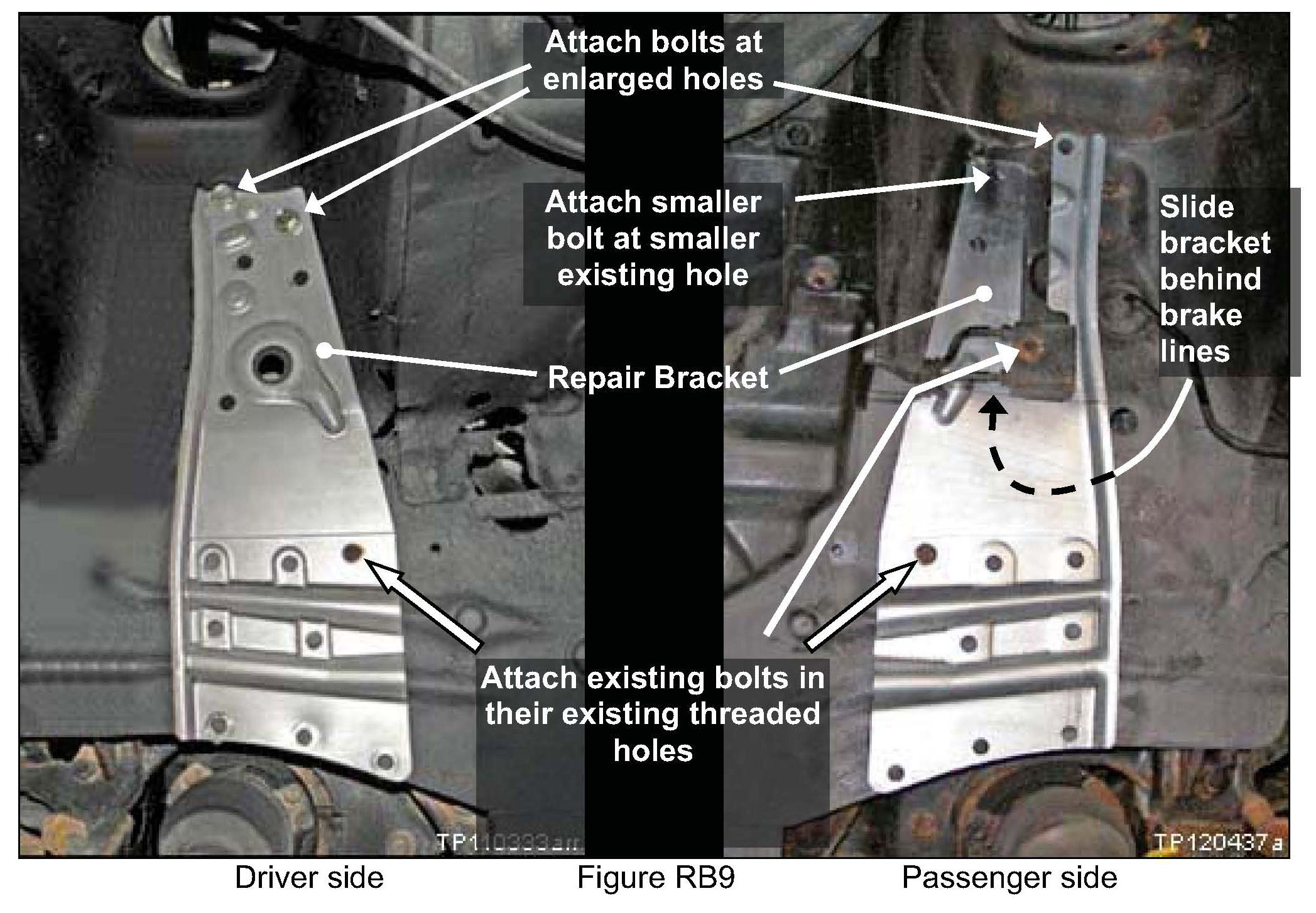 14. Attach the repair bracket using the existing holes that you enlarged (see RB9).