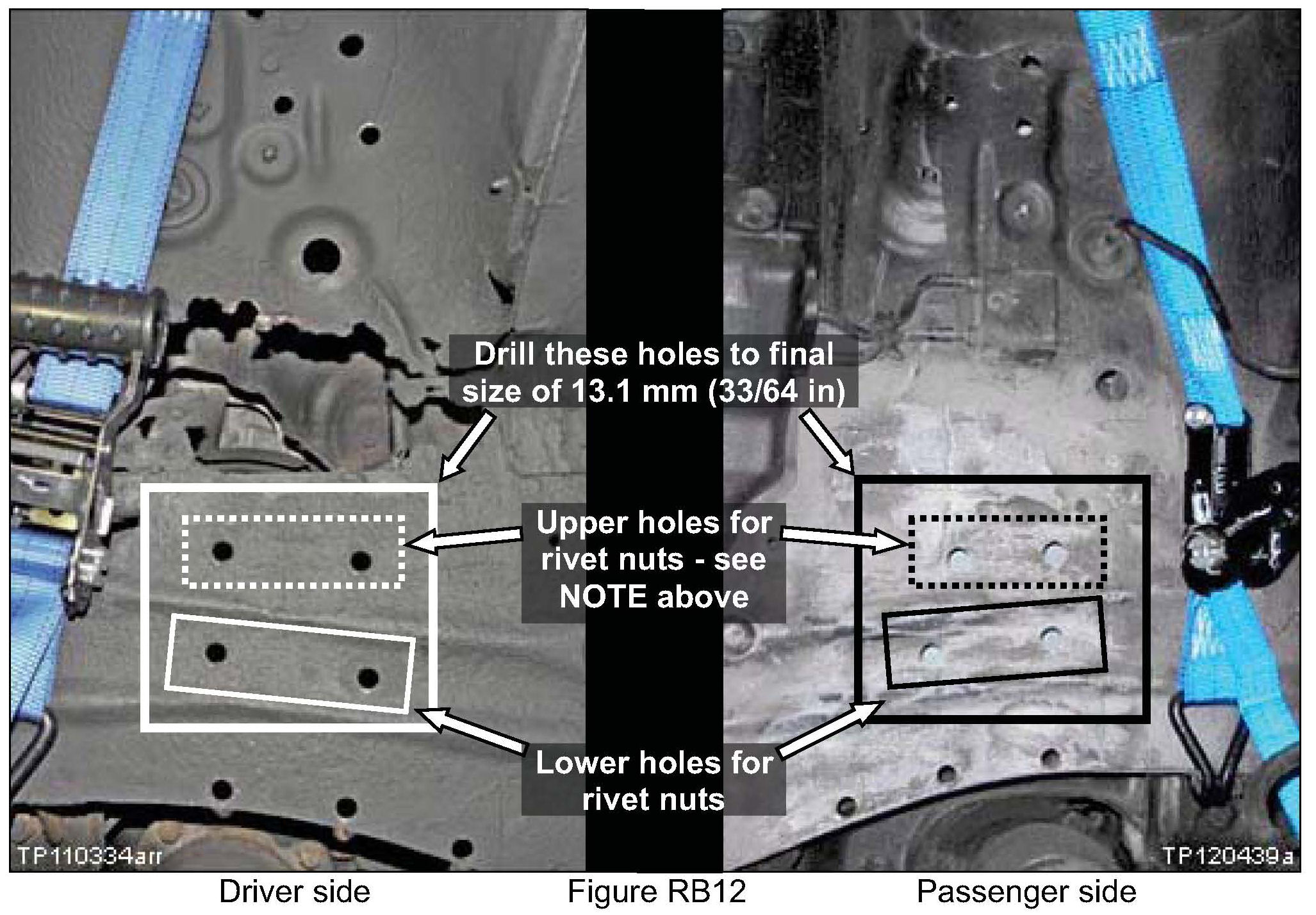 ^ Lower holes - Required: Rivet Nuts are required in the lower holes (indicated with dashed line in Figure RB12).