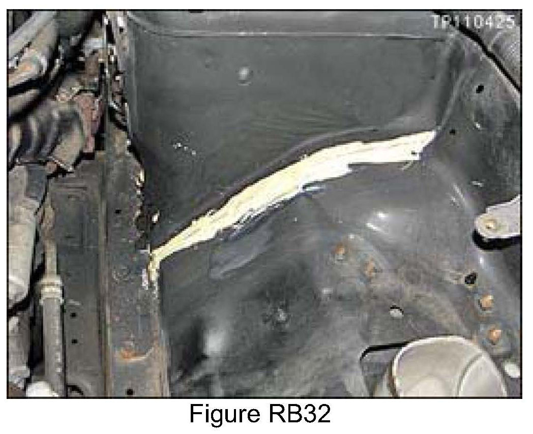 40. Completely and liberally coat the area shown in Figure RB33 (strut housing and wheel house area) with rubberized undercoat.