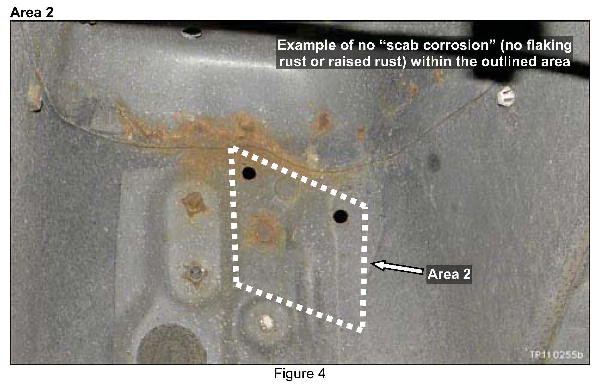 If there is scab corrosion (flaking or raised rust) in Area 2, driver side OR passenger side: