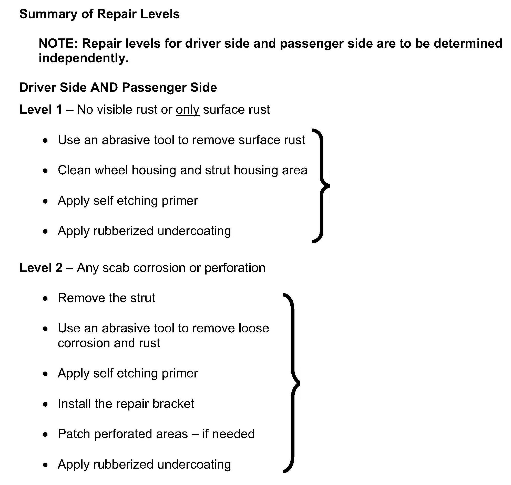 Corrosion and rust on the strut or other suspension components is not covered by this campaign.