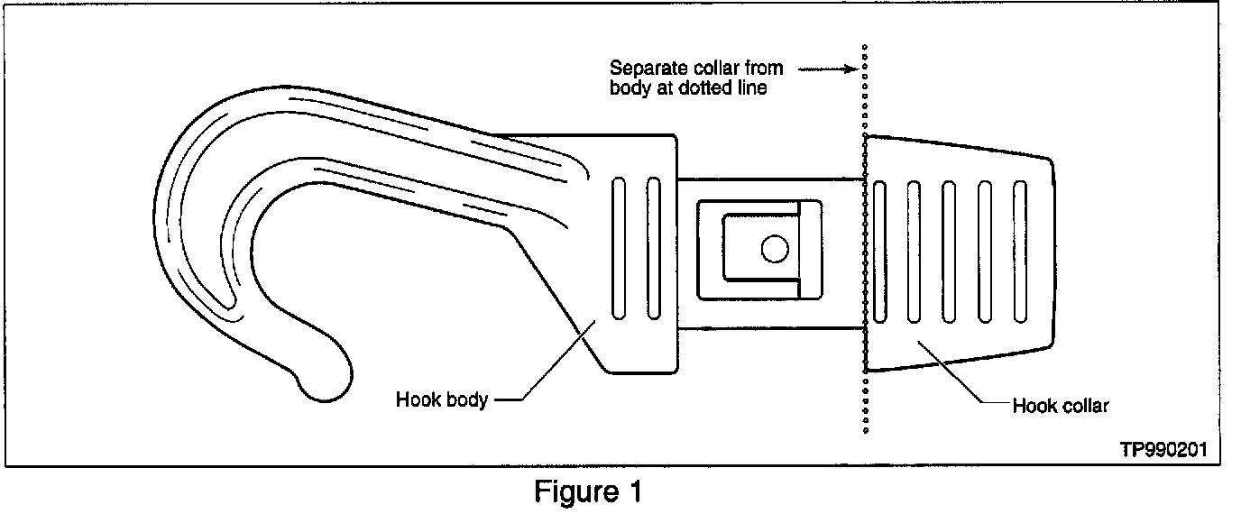 1. The replacement hook body and hook collar are molded as one part. Using a twisting motion, separate the hook collar from the hook body (see Figure 1).