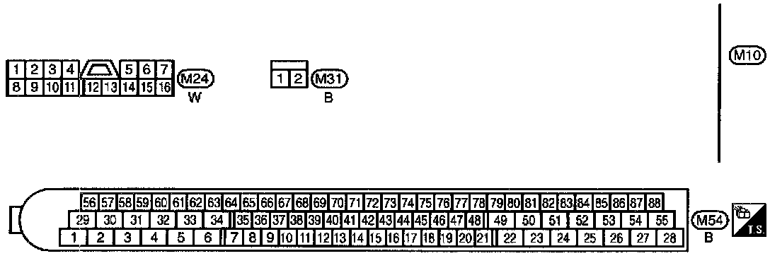 B1, E1, M1, M2 Body, Engine and Main Harness Terminal Arrangements