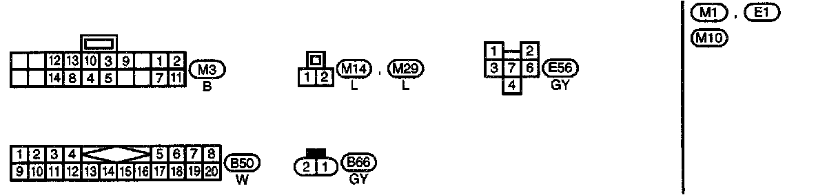 Main Harness, Engine Room, And Body Harness Connector Views: