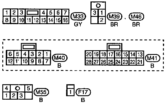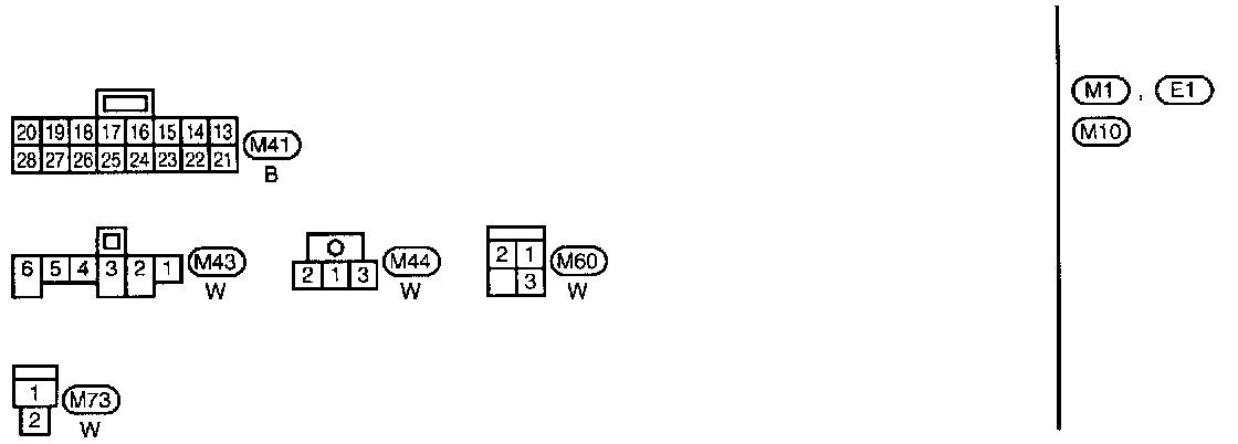 E1, M1 Body, Engine and Main Harness Terminal Arrangements