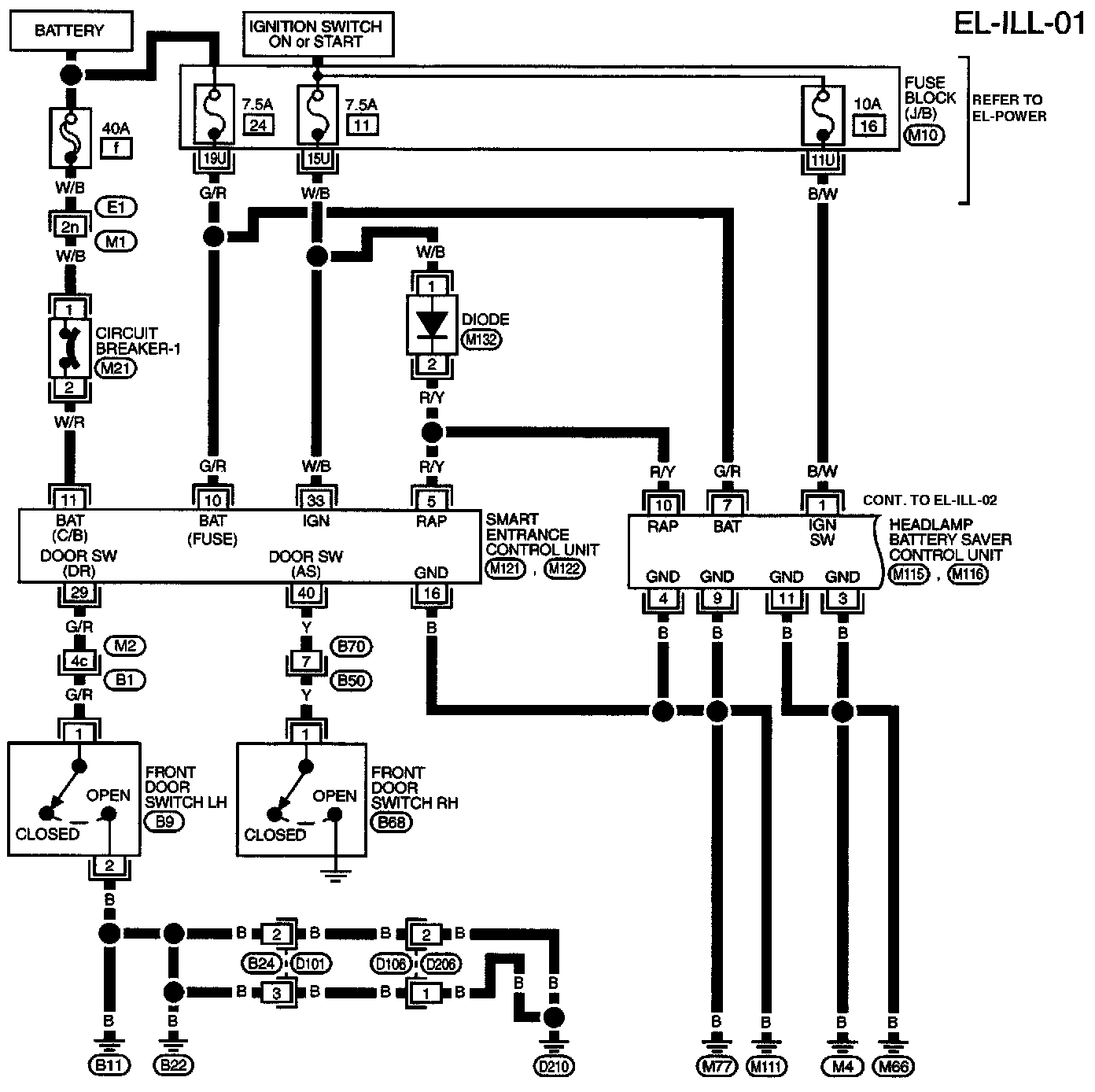 B1, E1, E3, M1, M2, M10, M91 Super Multiple Junction Box (SMJ) and Fuse Block - Junction Box (J/B) Terminal Arrangement