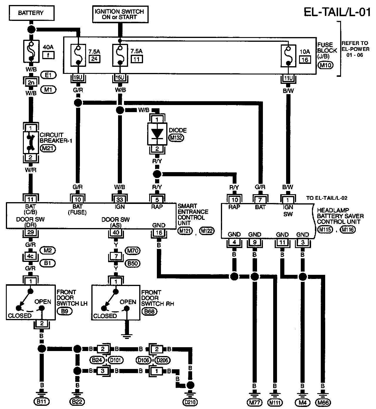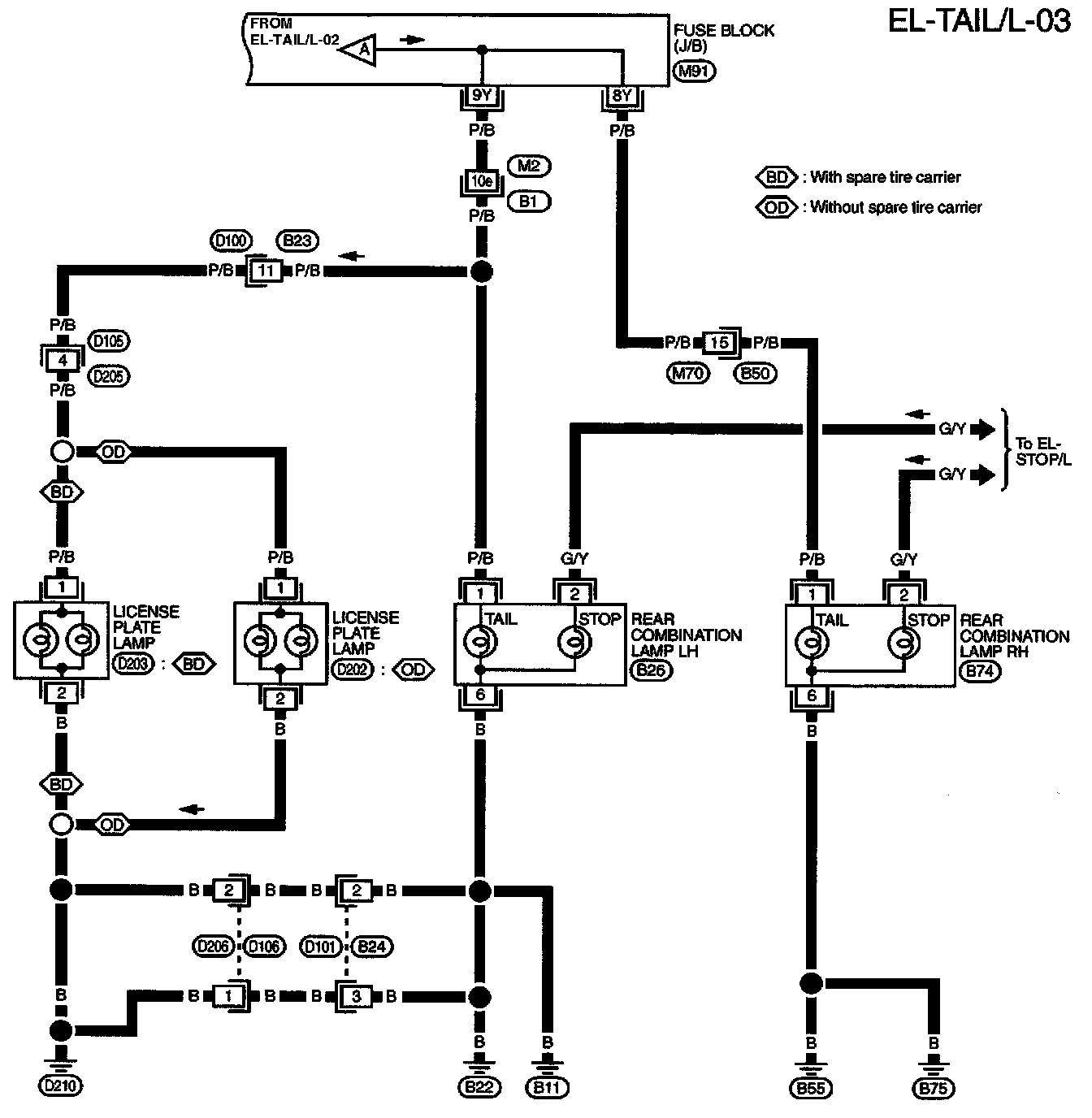 B1, E1, E3, M1, M2, M10, M91 Super Multiple Junction Box (SMJ) and Fuse Block - Junction Box (J/B) Terminal Arrangement