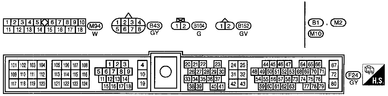 B1, M2 Body, Engine and Main Harness Terminal Arrangements