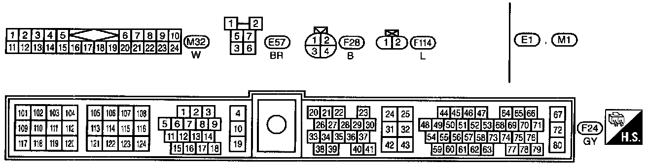 E1, M1 Body, Engine and Main Harness Terminal Arrangements