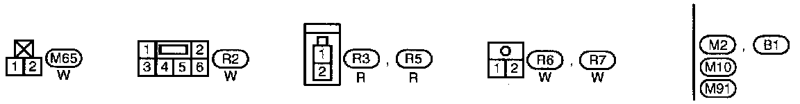 B1, M2 Body, Engine and Main Harness Terminal Arrangements
