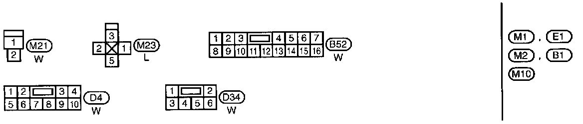 B1, E1, M1, M2 Body, Engine and Main Harness Terminal Arrangements