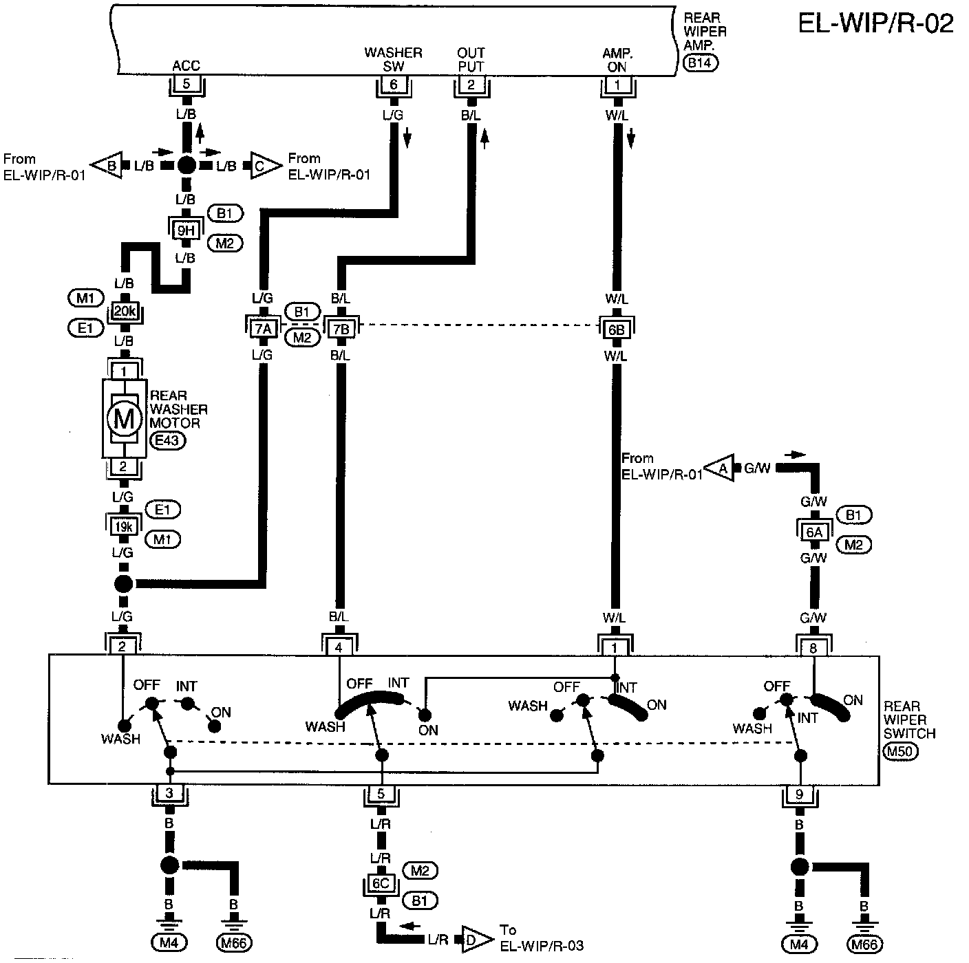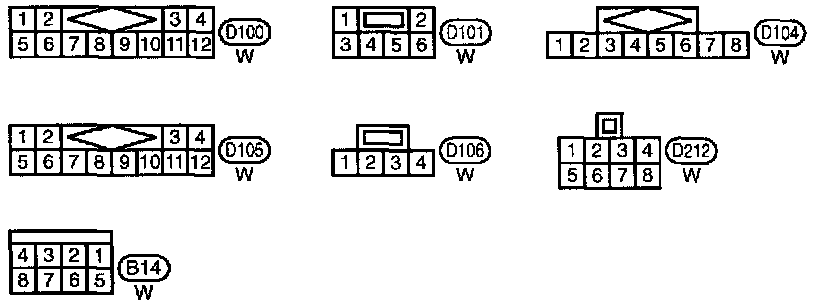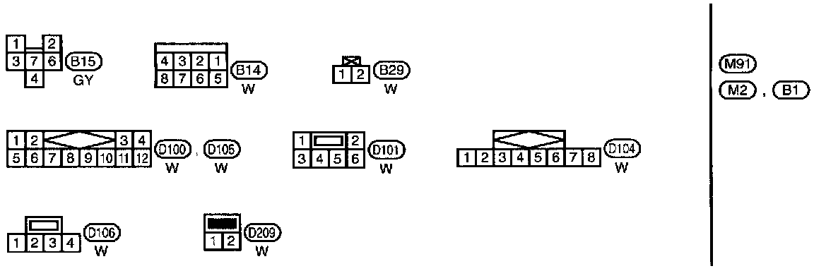 B1, E1, M1, M2 Body, Engine and Main Harness Terminal Arrangements