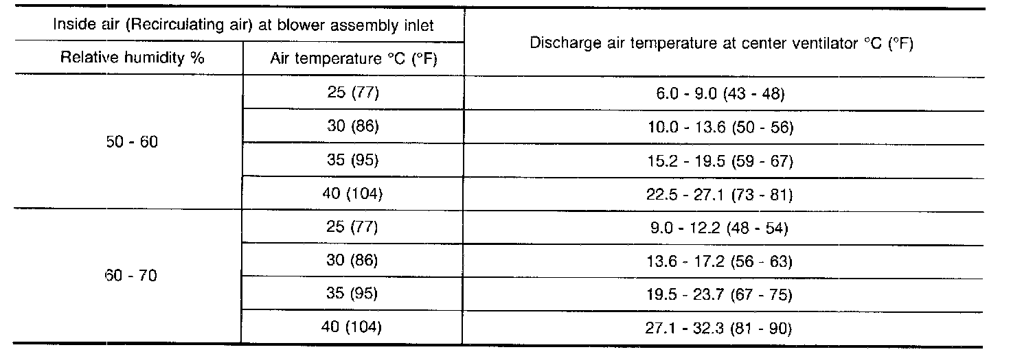 Operate the air conditioning system for 10 minutes before taking measurements.