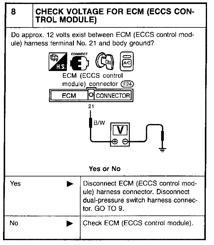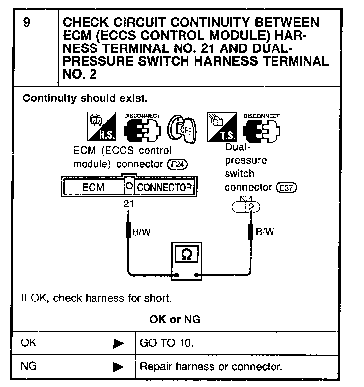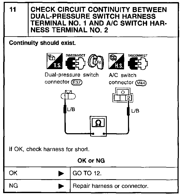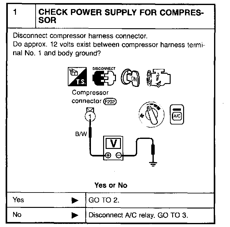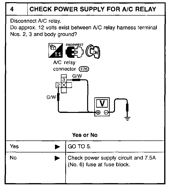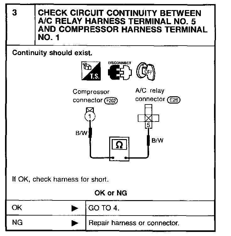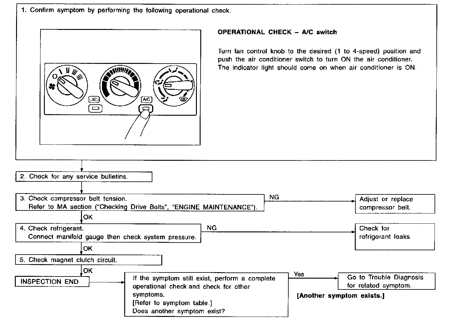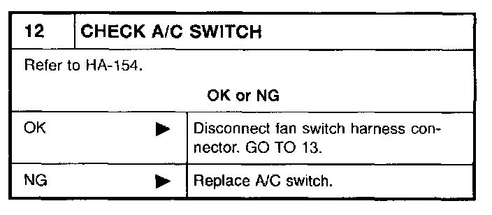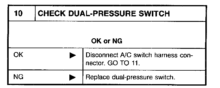 - Magnet clutch does not engage when A/C switch and fan switch are ON.