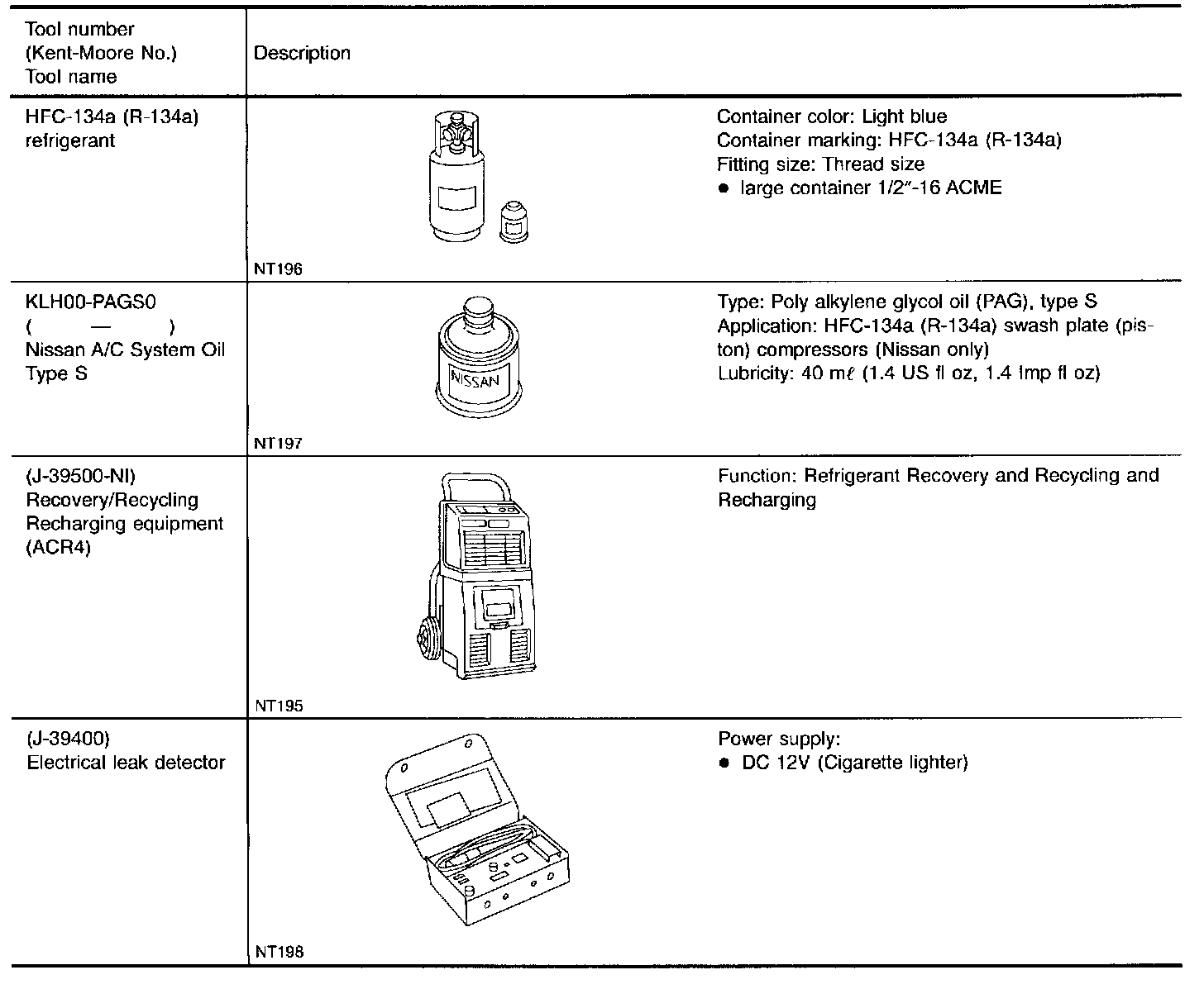 Never mix HFC-134a refrigerant and/or its specified lubricant with CFC-12 (R-12) refrigerant and/or its lubricant.