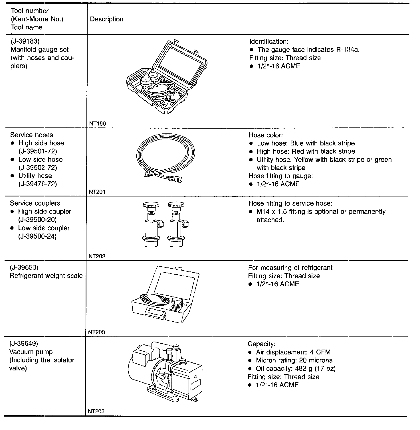 Refrigerant container fittings, service hose fittings and service equipment fittings (equipment which handles refrigerant and/or lubricant) are different between CFC-12 (R-12) and HFC-134a (R-134a). This is to avoid mixed use of the refrigerants/lubricant.