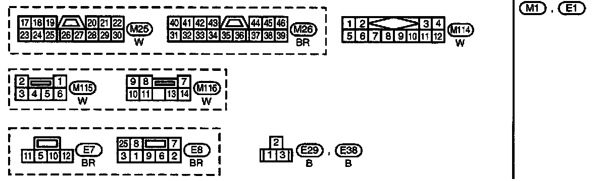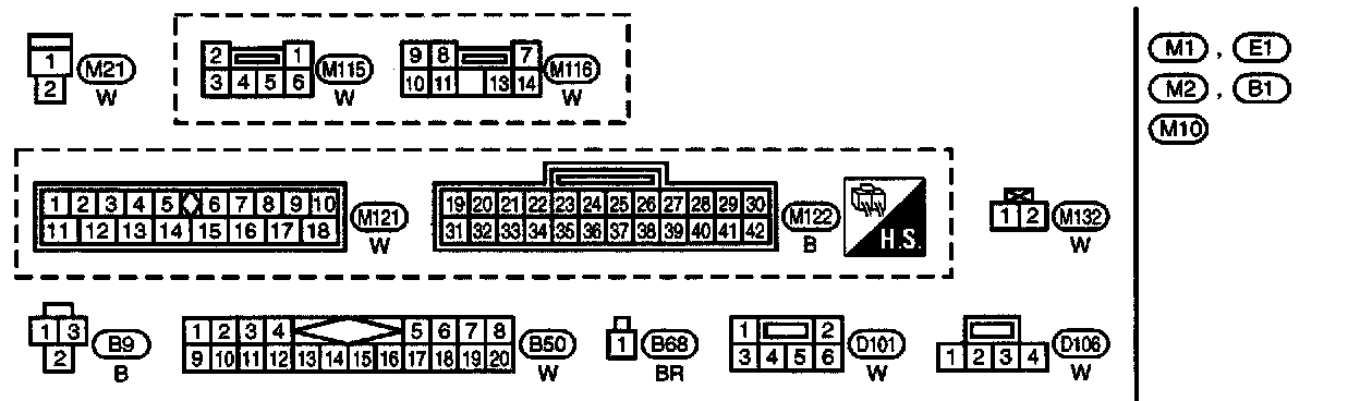 B1, E1, M1, M2, M10 Super Multiple Junction Box (SMJ) and Fuse Block - Junction Box (J/B) Terminal Arrangement